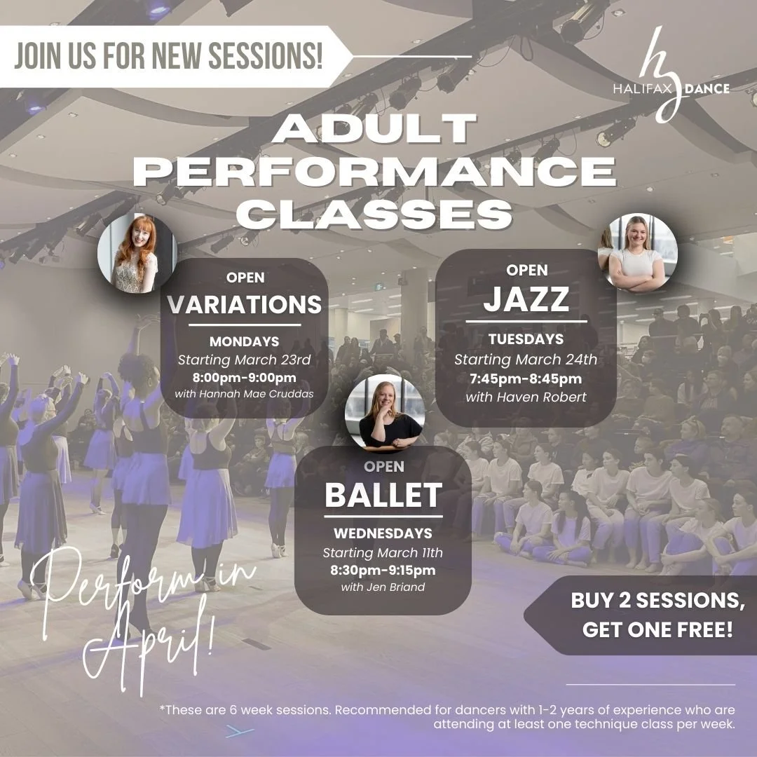 Halifax Dance welcomes adults of all skill levels to experience dance in a fun, accessible environment. Dancing can be a great way to stay active, make friends and learn something new or continue a passion from the past. If you have any questions about which classes may be suitable for you, please email us at info@hfxdance.ca!
